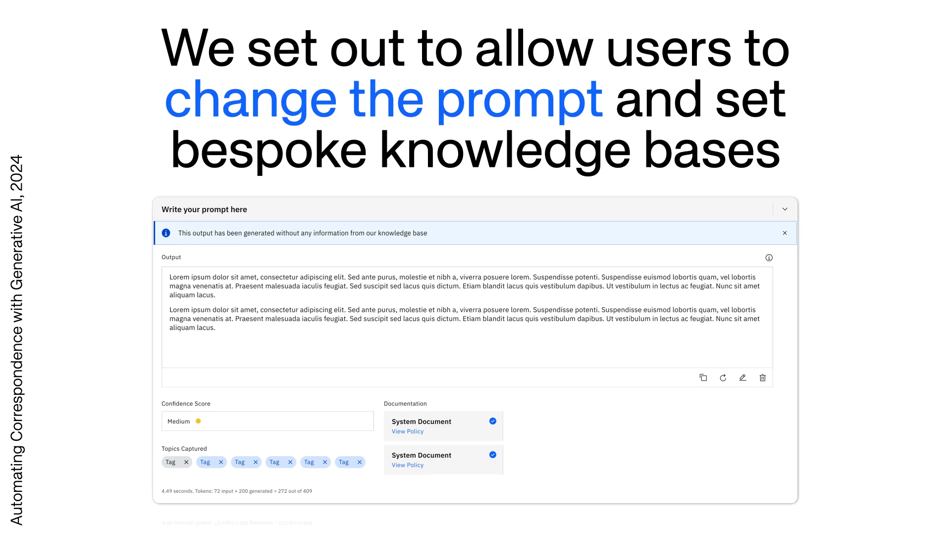 Staff needed to understand why a draft had been generated, and to see which documents it was grounded in, edit confidently without losing compliance alignment. Retaining clear ownership and transparency of every communication that left the organisation was essential.
