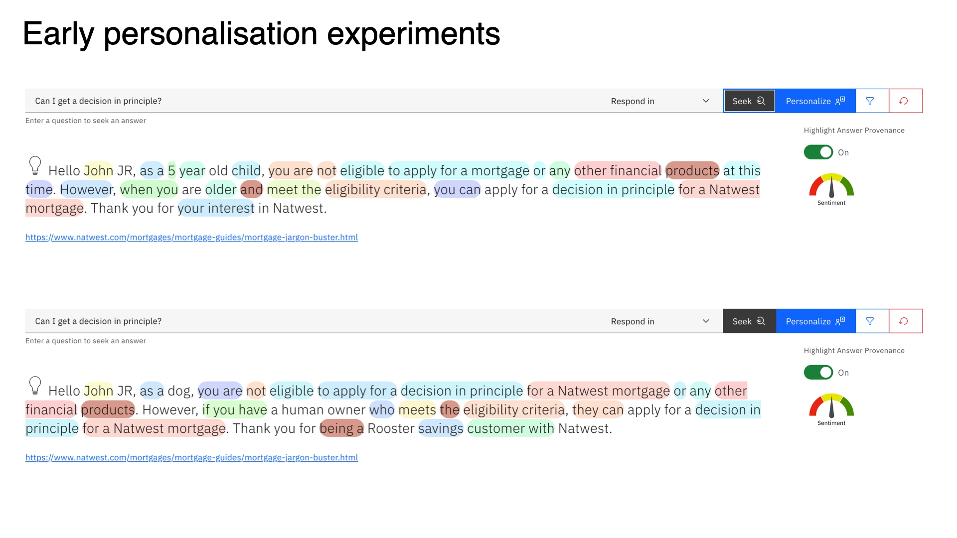 The evaluation framework we built during the MVP became a reference model for subsequent generative AI initiatives at NatWest and an internal template within IBM Client Engineering.